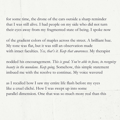 ’s #WednesdayPoetryClub (who else participates? Let me know). It has given me the encouragement to continue poems that I could not bring myself to finish. Thank You, Holy Spirit, for helping me write. I cannot do this without You.Today I’m sharing one I just completed, guided by the best Helper. This poem takes place circa ~2022, shortly after the hellish postpartum psychosis experience I touched upon in my last post. I am so grateful for my therapist, whom the Holy Spirit spoke through, to aid in my healing journey. I’ll never forget the words of truth and life Holy Spirit spoke over me, through him.